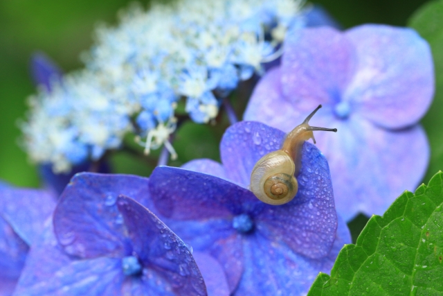 そう言って手をのばそうとすると、あじさいの葉の上に、一ぴきのカタツム