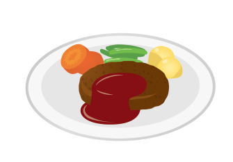 お父さんはハンバーグをお皿にのせました。