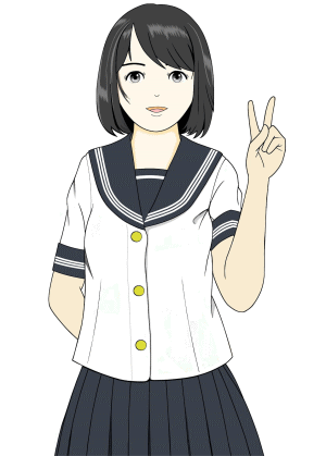 「お母さん、お父さん、これ見てみて。これが今度の行員の制服なのよ。」