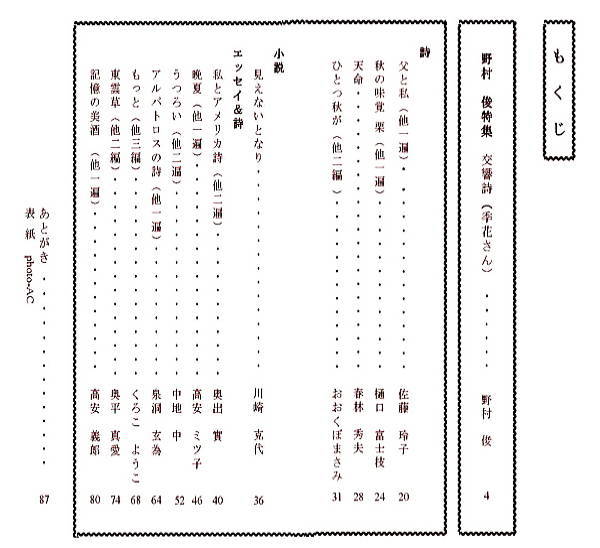 | 詩集 「千億の銀河」 ![]() 2019.年11月30日発行 装丁 アートディレクター 小野健治 |